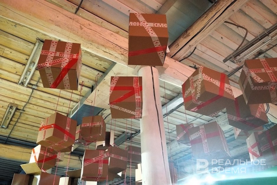 Irina Safiullina, known for her installations with coins, exhibited many packages for Unpacking at Smena, into which she put meaningful symbols like a heart. “What to take out of the box and what to leave inside and close is up to the viewer.”