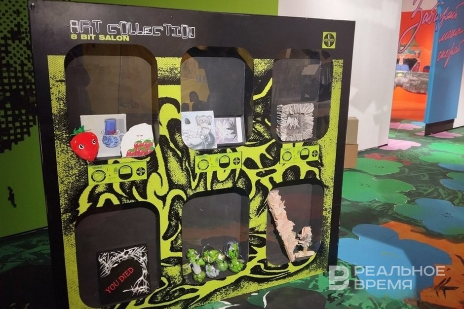 Several artists were inspired by Japanese culture. Star Trek by Nadezhda Rigova attracted attention with a collection of ceramic daggers against the background of advertising patterns. ORDO team (Makhmud Abzalov and Daria Rodchenko) attracted viewers with a miniature machine from which you could get toys. It is called gachapon, and some teenagers, having shown ingenuity, managed to turn it on. And next to it there was a mini-exhibition of interesting artefacts inspired by the eight-bit theme.