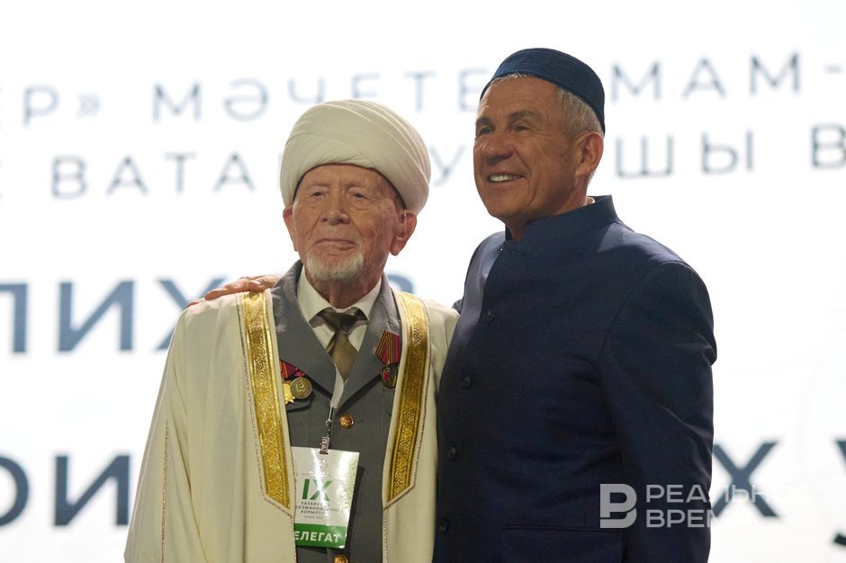After which he presented the oldest imam of the congress, 97-year-old Haris Salikhov, imam of the Khater mosque, with the jubilee medal 80 Years of Victory in the Great Patriotic War of 1941-1945. By the way, in 2013, the retired police colonel, who devoted himself to religion in the 90s, and received the Tukay Prize for the books Secular and Spiritual Motifs in the Works of A. Pushkin, G. Tukay and the Problems of Moral Education Today and Religion and Science (Fundamentals of World Religious and Secular Cultures), put forward his candidacy, along with Farid Salman, in the elections of the mufti of Tatarstan. Then, for the first time, Samigullin won.