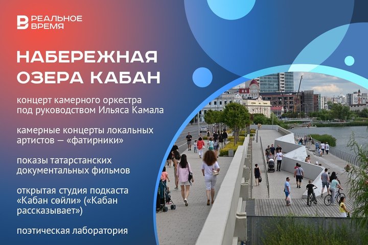 The summer programme at the Kaban Lake embankment this year will extend to the landscaped area near the new Kamal Theatre building. It will feature a concert by a chamber orchestra conducted by Ilyas Kamal, with a repertoire that includes works by Tatar classical composers as well as contemporary musicians from the republic.