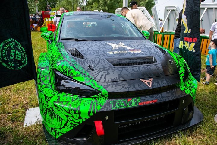 Children enjoyed exciting competitions and animators. Everyone could capture their festive mood by taking a photo in a unique photo zone decorated in the style of a Tatar village. Another highlight of the TAIF-NK JSC site was a real Cupra racing car. The car participates in the TCR Russia circuit racing series.