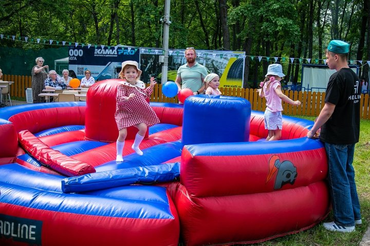 The young visitors of the TAIF-NK site really did not have time to get bored — there were plenty of activities. Some participants deftly threw balls into the ring, threw hoops, measured their strength on an inflatable ring and honed their jumps on a bouncy house.