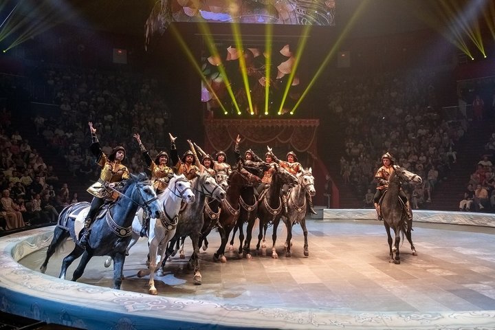 Director Elmira Bulatova announced the preparation of the programme last autumn, in an interview with Realnoe Vremya she described it as follows: “This is about our everything — our myths, legends, traditions, about what Tatarstan is — as we see it in the circus. Naturally, there will be Sabantuy, without it, the national Tatar show will not work.” The show was taken over by Evgeny Shevtsov, the main director of the Moscow Nikulin Circus on Tsvetnoy Boulevard (he also did New Year's Labyrinth). Together with the choreographer Olga Poltorak, they received the Thea Awards in Los Angeles this year (for Chimelong Showin Guangzhou). The team also includes Director of the Kazan Circus Andrey Sharnin, production designer Nadezhda Russ, set designer and visual effects artist Anatoly Nezhny. Artistic director of the Kamal Theatre and Ekiyat Ilgiz Zainiyev, who wrote At the Sennoy Bazaar, advised turning to legends.