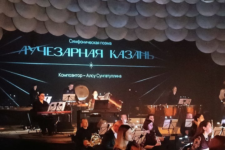 Just recently, on 21 and 22 June, Radiant Kazan was performed again in Kazan. This happened in the new building of the Galiasgar Kamal Theatre in the Eastern Hall. The work was performed by the Kamal Theatre Orchestra under the direction of Daniyar Sokolov. He himself selected the program, interesting works. It included works by classics, for example, the symphonic poem Musa Jalilby Almaz Monasypov, and modern compositions by young composers of Tatarstan were included in the program. It turned out to be such an audiovisual performance. The orchestra plans to continue performing, the project will be called The Melody of Light, will be included in the repertoire and will be available to a wide audience. My work will also remain in the programme, it is a great joy for me to get into the repertoire.