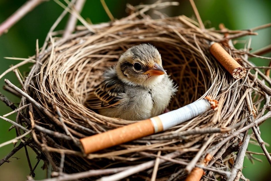 Birds living in urban parks — tits, sparrows, song thrushes, finches — often use cigarette butts as nesting material. This has been observed in various countries around the world, from Mexico to the Galapagos and New Zealand. British sparrows even build nests directly in outdoor ashtrays. Ornithologists from the University of Łódź (Poland) decided to find out why they make such a strange choice.