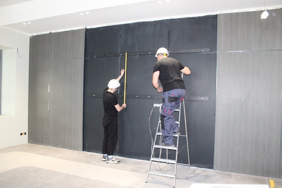 — We have been on site for about two months. The work is approximately 95% complete. The remaining task is to cover a brick wall with printed CRIBLAT panels. It's meticulous work. The print consists of three triangular panels. Each part needs to be precisely fitted to the existing dimensions, — said Anatoly Marilov, a construction and installation foreman.