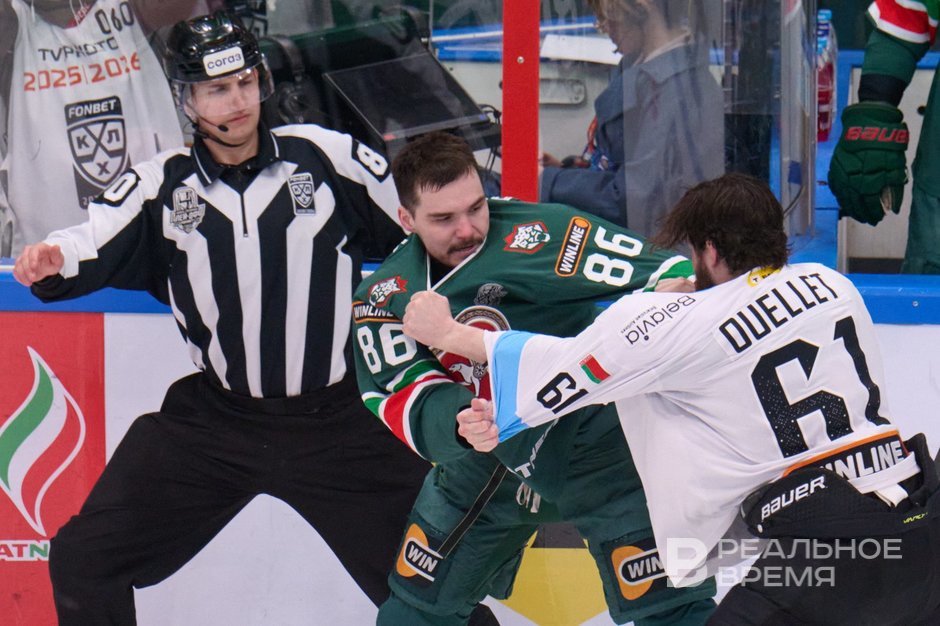The start of the game was truly combative. In the first five minutes, Minsk instigated three fights, turning every stoppage into a scrum. Early on, five-minute penalties were handed out to Nicolas Meloche and Xavier Ouellet for the visitors, and Mikhail Fisenko and Nikita Dynyak for the “Bars.” Nikita Lyamkin, Artyom Galimov, Josh Brook, and Darren Dietz were also penalized. As a result, by the sixth minute, each team had 16 penalty minutes.