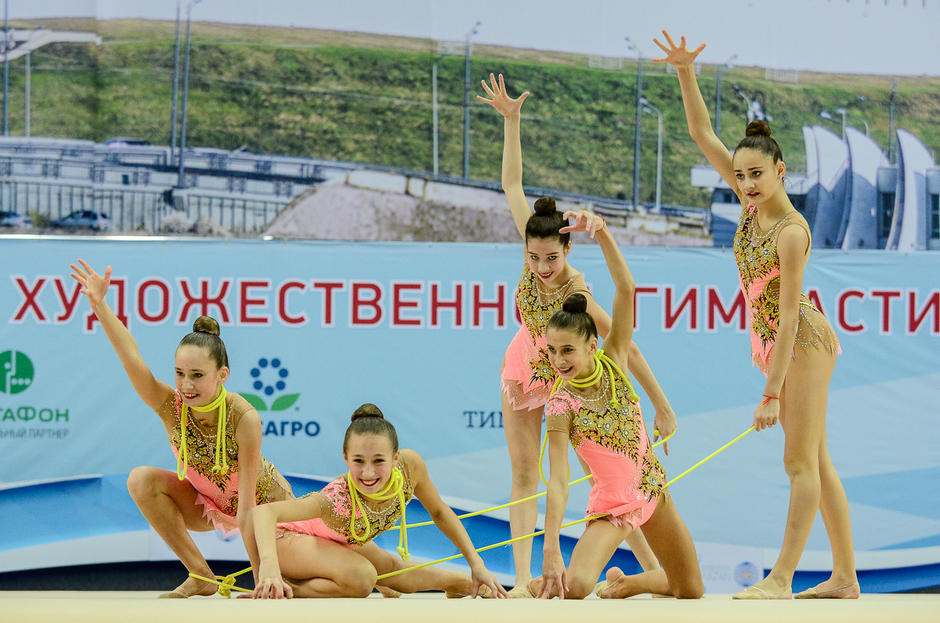 The Russian Rhythmic Gymnastics Team Championships ended in Kazan. Three different teams became winners in the three routines. In group all-round, the Saint Petersburg team won the first place, the Moscow team took the lead in the routine with five hoops. The team from Nizhny Novgorod Oblast won the routine with 3 balls and 2 ropes.
